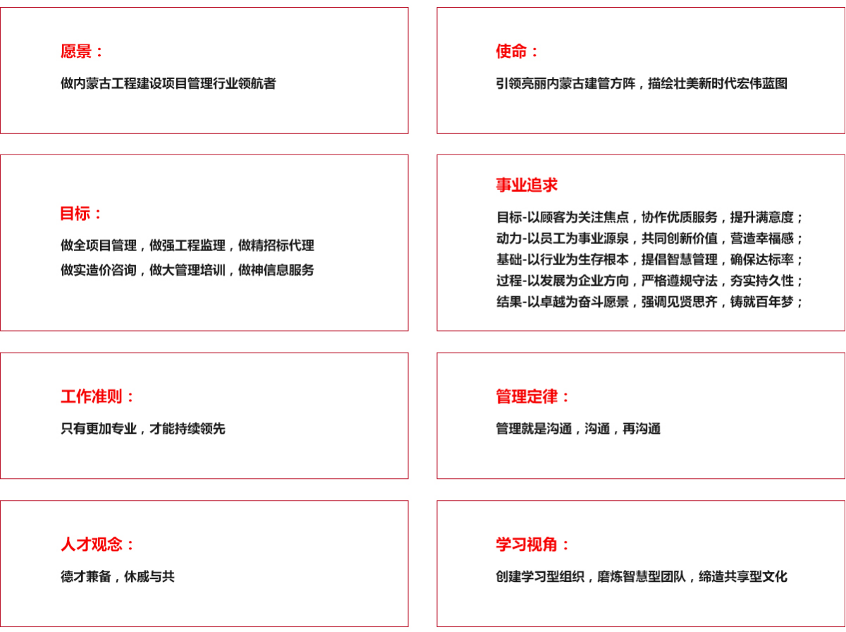 萬和項(xiàng)目管理公司堅(jiān)定不移地圍繞“和文化”核心,以持續(xù)打造“萬象更新”地創(chuàng)業(yè)面貌和“和衷共濟(jì)”地發(fā)展理念為倆翼,提倡“員工、客戶、行業(yè)、社會(huì)”四個(gè)方面融為一體,為員工搭建創(chuàng)業(yè)平臺(tái),為客戶提供增值服務(wù),與同行結(jié)生態(tài)盟友,對(duì)社會(huì)盡企業(yè)義務(wù)。