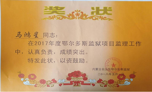 鑒于馬鴻星同志一貫兢兢業(yè)業(yè)、認(rèn)真負(fù)責(zé)的工作態(tài)度和工作作風(fēng),建設(shè)單位還專門為他頒發(fā)了獎(jiǎng)狀,給予其精神上的獎(jiǎng)勵(lì)。