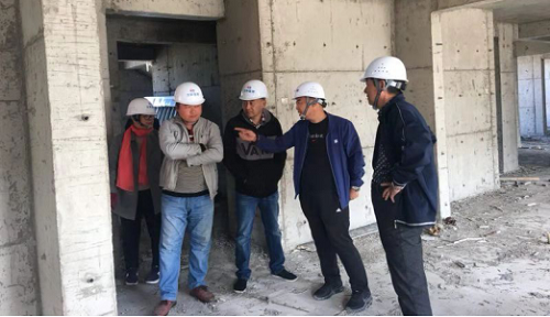 副總經(jīng)理高瑞軍(右二)在清宜林海岸二期工程針對(duì)“混凝土外觀質(zhì)量問題”對(duì)各專業(yè)監(jiān)理工程師進(jìn)行技術(shù)指導(dǎo)