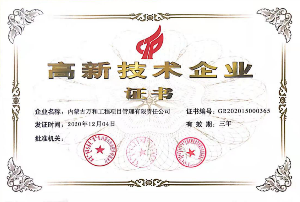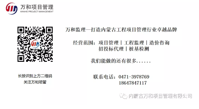 內(nèi)蒙古萬和工程項目管理有限責任公司是原建設部批準的三甲級企業(yè);(房屋建筑工程監(jiān)理、市政公用工程監(jiān)理、工程造價咨詢)是“三標一體”管理體系認證和商標注冊企業(yè),主要從事房屋建筑、市政公用工程監(jiān)理、礦山與機電安裝工程監(jiān)理、工程造價咨詢、全過程項目工程咨詢與項目管理、招標代理,政府采購及地基基礎工程檢測等業(yè)務,是中國建設監(jiān)理協(xié)會理事單位,內(nèi)蒙古工程建設協(xié)會副會長單位以及呼和浩特市建筑業(yè)協(xié)會監(jiān)理專業(yè)委員會副主任單位,在內(nèi)蒙古各盟市均設有分公司。2009年內(nèi)蒙古住房和城鄉(xiāng)建設廳批準取得樁基檢測實驗室資質(zhì);2013年內(nèi)蒙古自治區(qū)人防工程辦公室批準取得人民防空資質(zhì)(可承擔內(nèi)蒙古自治區(qū)抗力等級5級以下人民防空監(jiān)理業(yè)務);2017年取得了招標代理資質(zhì);2019年取得礦山與機電安裝工程監(jiān)理乙級資質(zhì)。2020年經(jīng)內(nèi)蒙古自治區(qū)科學技術廳批準獲得“國家高新技術企業(yè)”。